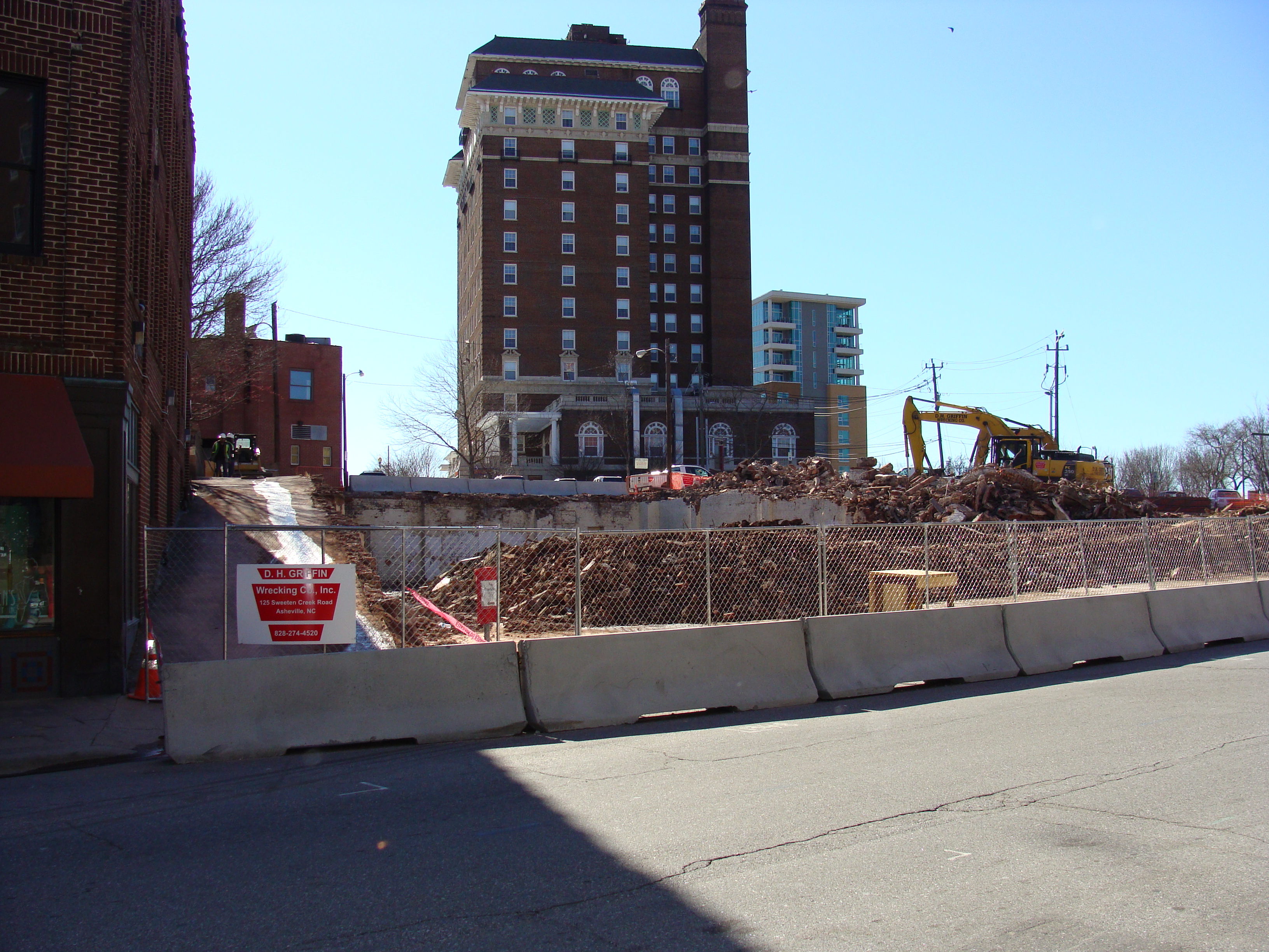 TODAY: YESTERDAY: FIFTY-EIGHT YEARS AGO: Harry’s Cadillac Pontiac Company, seen here on the right, is first listed at 68 Haywood Street in the 1938 Asheville City Directory. Harry Blomberg had opened Harry’s Motor Inns across the street in 1930, shown in this later view as Worth’s Fashion Mart, the present-day site of Pack Memorial Library. Mr. Blomberg